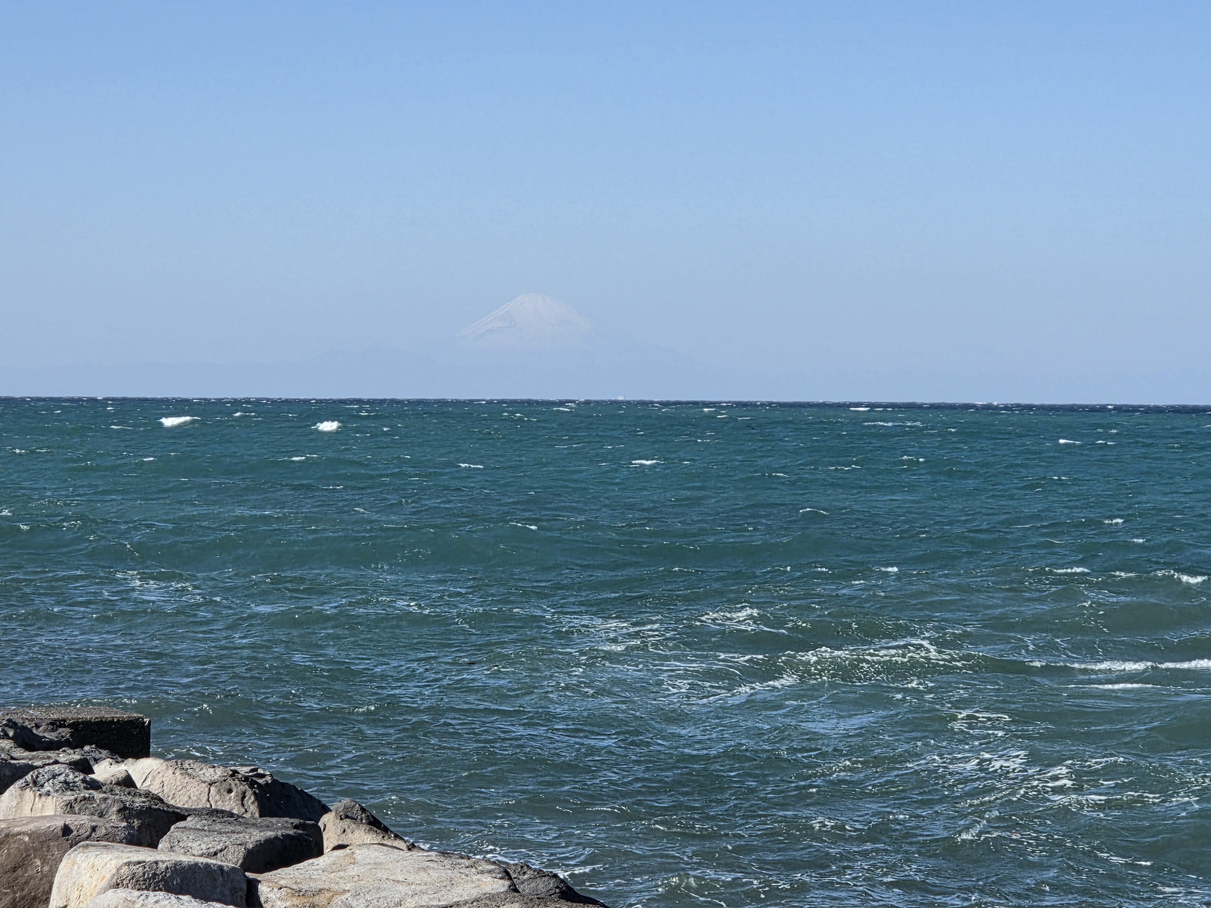 千葉県館山から雪が積もった富士山が見えました。